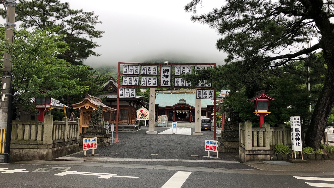 洲本市中心部・アルチザンスクエアの近くに、ドラゴンクエストの記念碑があります。スライムなどの碑です。近づくと、あのドラクエの音楽も流れました。ドラクエの生みの親である堀井雄二さんが洲本市出身であることにちなんで、この碑がつくられました。ドラクエグッズを持って記念撮影する人もいました。