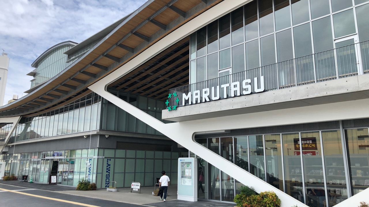 丸亀市市民活動交流センターです。近年オープンした、新しくて明るい施設です。丸亀市役所の近くにあります。1階には、スターバックスコーヒーが入っています。図書館のように、本も配置されており、貸出はできませんが、自由に閲覧できます。