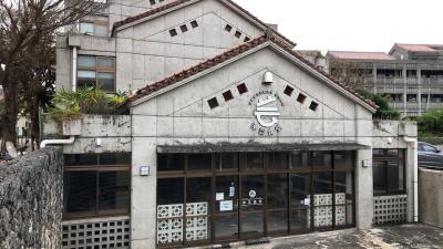 首里城公園に隣接した、沖縄県立芸大の食堂です。当蔵バス停から首里城公園へ行く途中、地下に階段で下りた場所にあります。「芸」という字を、ご飯を炊く釜のようにしたロゴマークが入口にあり、印象的です。入口には、一般の方もご利用くださいと書かれています。ただし、平日昼間だけのオープンです。