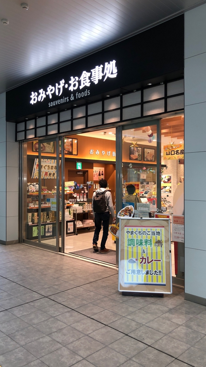 新山口駅2Fにある土産屋です。改札外にあるので、改札内に入ってしまわないよう、要注意です。土産物の販売スペースはあまり広くありませんが、隣接して待合室や麺屋、ベーカリーカフェもあるので、電車の待ち時間に便利です。
