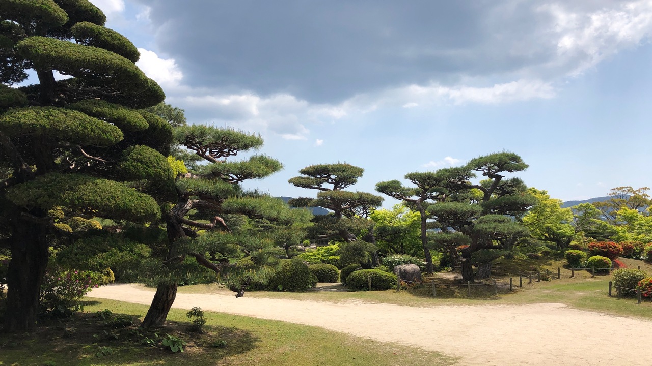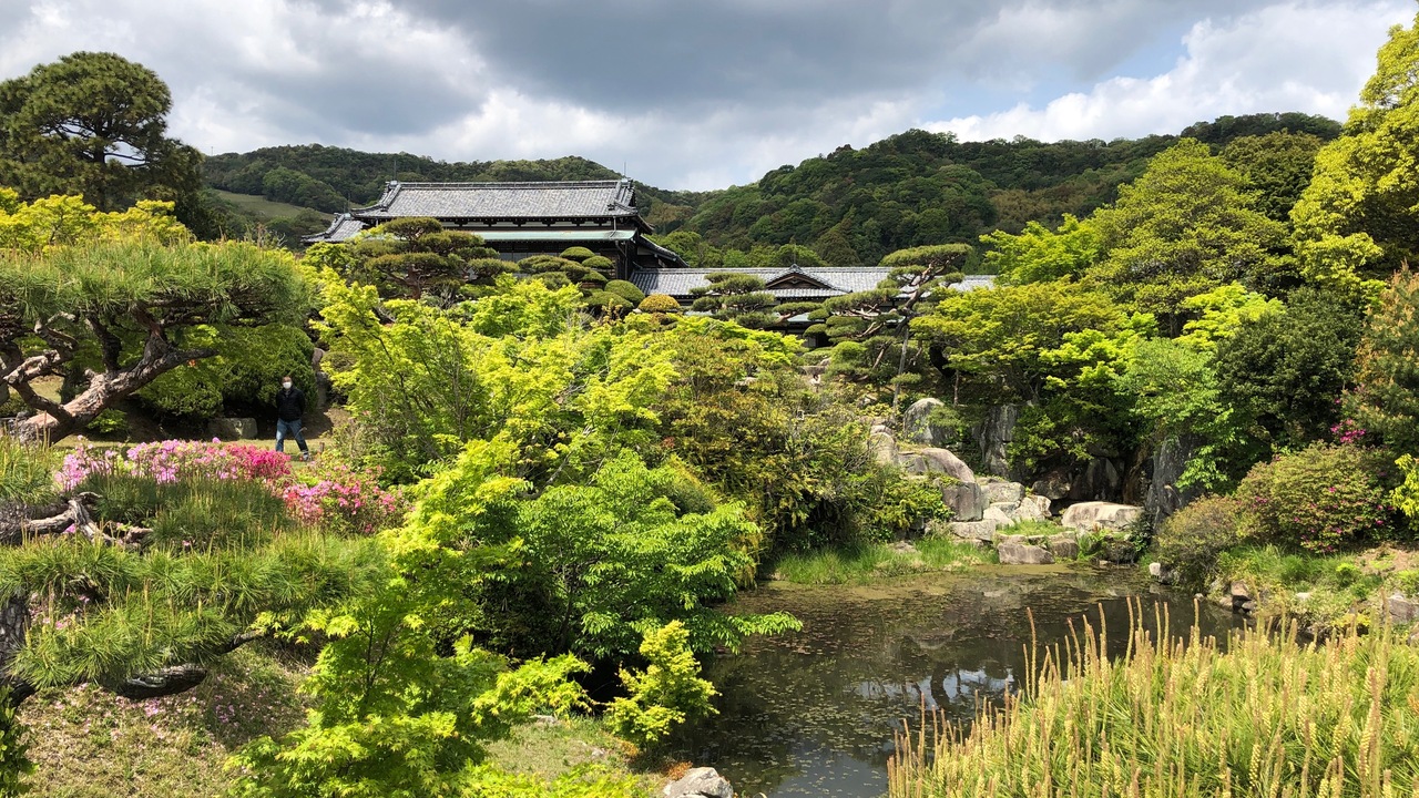 毛利邸の庭園です。毛利邸は、現在、毛利博物館として公開されています。庭園は広く、盆栽のように手入れされた木々が美しいです。庭園は400円、博物館は700円が必要ですが、共通券を買えば1000円とお得です。