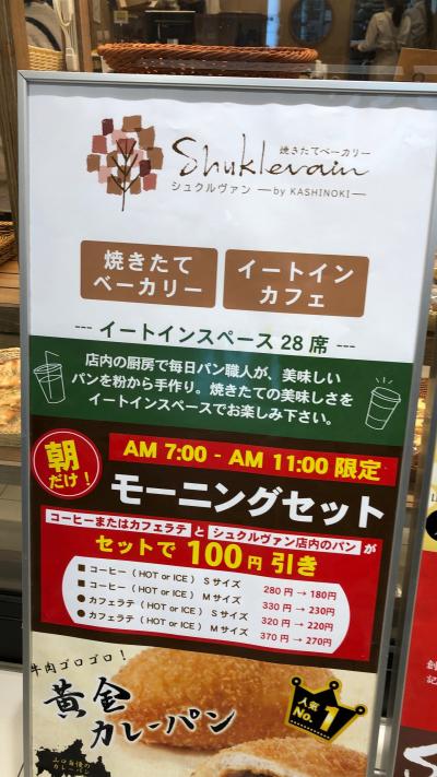山口市や宇部市、防府市などに店舗があるベーカリーチェーン店です。多くの店にカフェスペースがあり、イートインも可能です。黄金カレーパンという人気商品を食べました。牛肉がゴロっと入っていて食べ応えがありました。新山口駅2Fの店舗では、朝7時から11時のドリンクが100円引きとなるモーニングセットメニューもあります。
