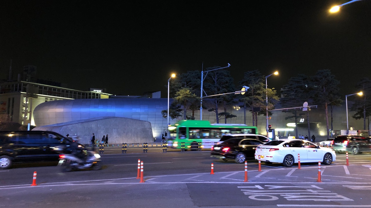 東大門エリアにあります。円形のUFOのような建物が特徴的です。夜になると、幻想的にライトアップされます。LEDライトによるバラ庭園も見どころです。ミュージアムや飲食店、東大門歴史公園駅などが集まっています。