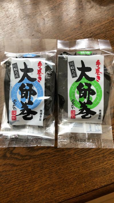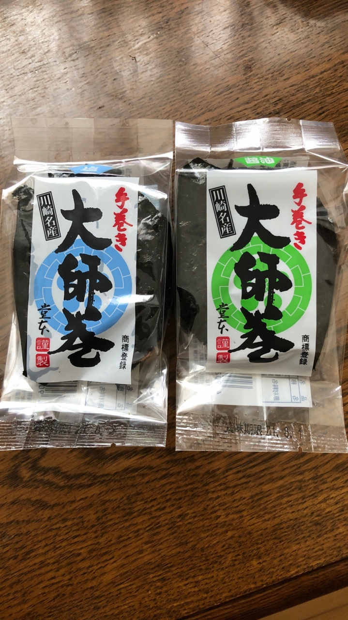 堂本は、おかきを海苔で巻いた「大師巻」が有名です。2021年5月、川崎駅の地下街・アゼリアに店舗はありませんでした。かわりに、アゼリアにある「箱根ベーカリー」で販売されていました。堂本のHPを見ると、2022年分の注文受注も終了したと告知されており、とても人気の商品のようです。