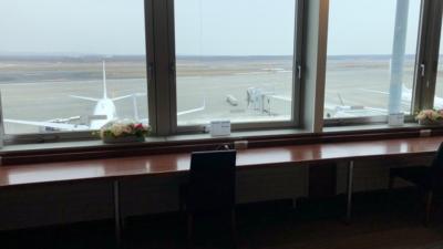 新千歳空港3Fにあるクレジットカードラウンジです。ヒストリーミュージアムの奥にあります。滑走路に沿って横長なので、窓からの景色が良く、席数も多いです。ドリンクは、他の空港と同じようなラインナップですが、北海道の牛乳があった点が珍しかったです。