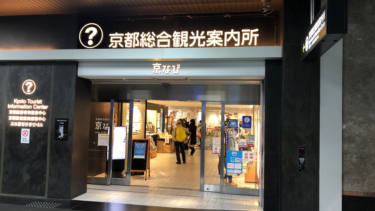 京都駅2F、南北自由通路にあります。伊勢丹の隣、JR西口改札口を出た辺りです。京都市内はもちろん、宇治・亀岡など府内全域の観光情報が揃っています。多言語対応可能なので、コロナ以前は外国人観光客も多かったです。