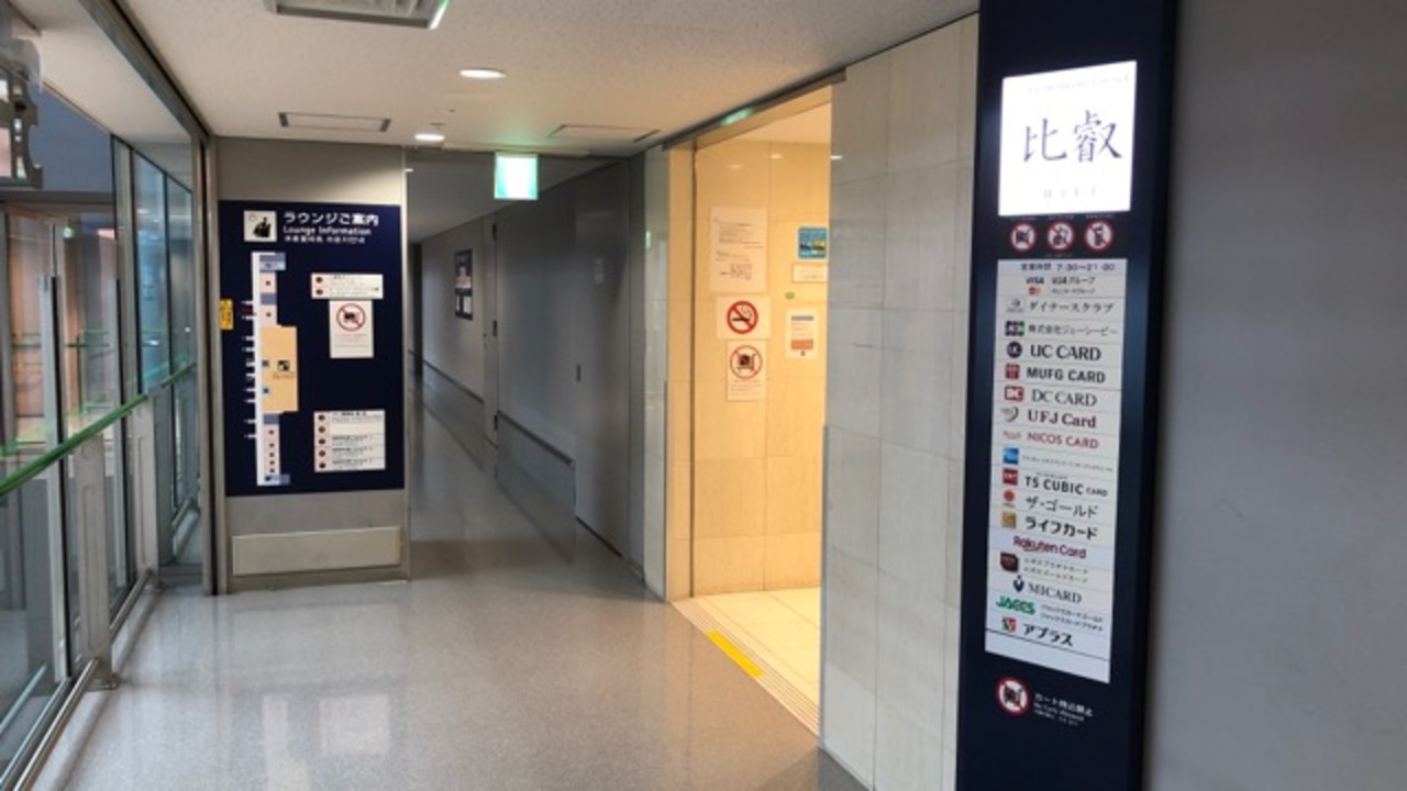 関西空港第1ターミナル3Fにある、クレジットカードラウンジです。関空の多くのラウンジは、国際線の出発エリアにあり、国際線利用者しか入れません。その点、この「比叡」は、3Fレストラン・ショッピングフロアにあるので、国内線利用者でも使えます。出発前はもちろん、関空到着時にも利用できます。