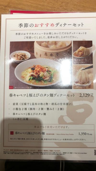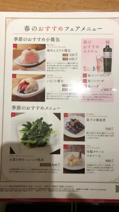 阪急うめだ本店12Fにあります。小籠包はもちろん、麺類や炒め物、スイーツ、どれもおいしかったです。季節限定品もあり、春は、桜餡小籠包やたけのこ料理、春キャベツ麺など、春を感じることのできるメニューでした。
