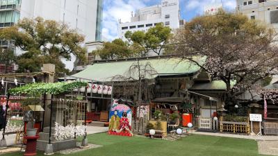 「つゆのてんじんしゃ」と読み、お初天神とも呼ばれる神社です。近松門左衛門の人形浄瑠璃「曽根崎心中」野もととなった心中事件は、この神社の境内で起きました。このことにちなみ、縁結びの神社としても知られています。
