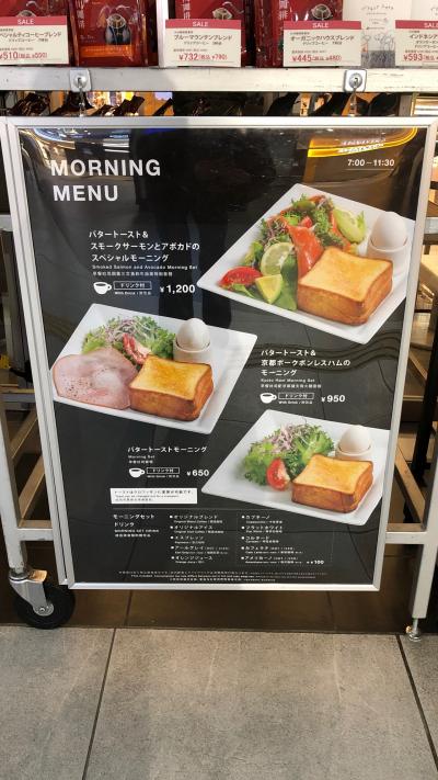 今では全国にありますが、小川珈琲は京都発祥の珈琲屋さんです。京都駅中央口店は、コトチカ京都内にあります。朝7時からオープンしており、モーニングメニューもあるのでお得です。京都ハムモーニング950円を食べましたが、650円のバタートーストモーニングにハムが付くだけで300円も高くなりました。バタートーストモーニングで十分だったかなと思っています。人気店なので8時ぐらいには満席となり、店外で待つ人もいました。