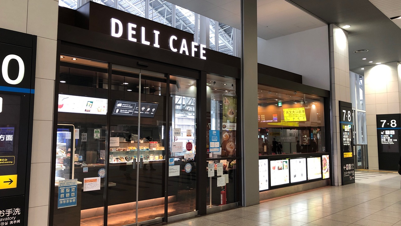 JR大阪駅・連絡橋口改札内にあるカフェです。目立つので待ち合わせ場所にもおすすめです。御堂筋口にあるデリカフェより狭く、混んでいることが多いです。窓側のカウンター席にはコンセントがあります。マイタンブラー持参で50円引きになるのがうれしいです。
