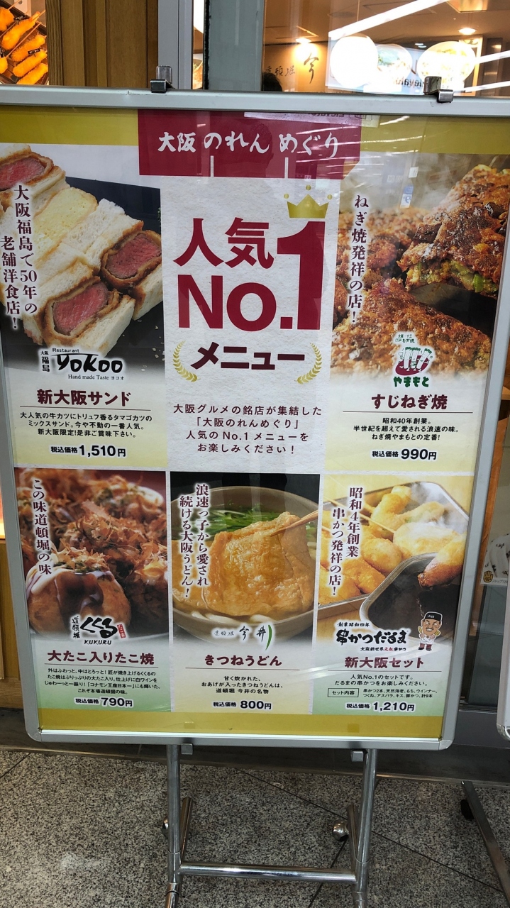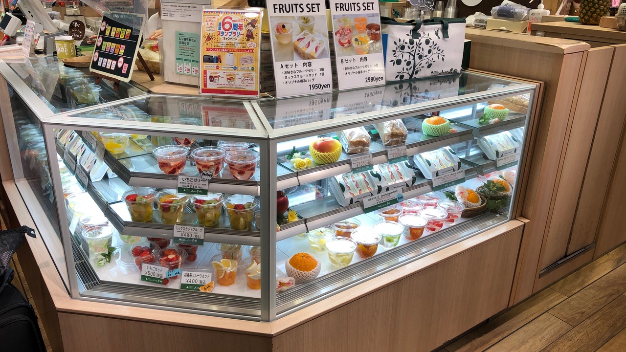 上本町三丁目の果物店・フルーツパーラーの支店です。新大阪駅在来線改札内のエキマルシェにあります。新大阪店はテイクアウト専門です。雑誌などでよく紹介される、大阪の有名な果物店です。フルーツサンドやフルーツジュースを買って、新幹線や特急の車内で飲み食いするのに便利です。フルーツサンドは、定番のミックスサンドの他、春の柑橘類サンドもありました。