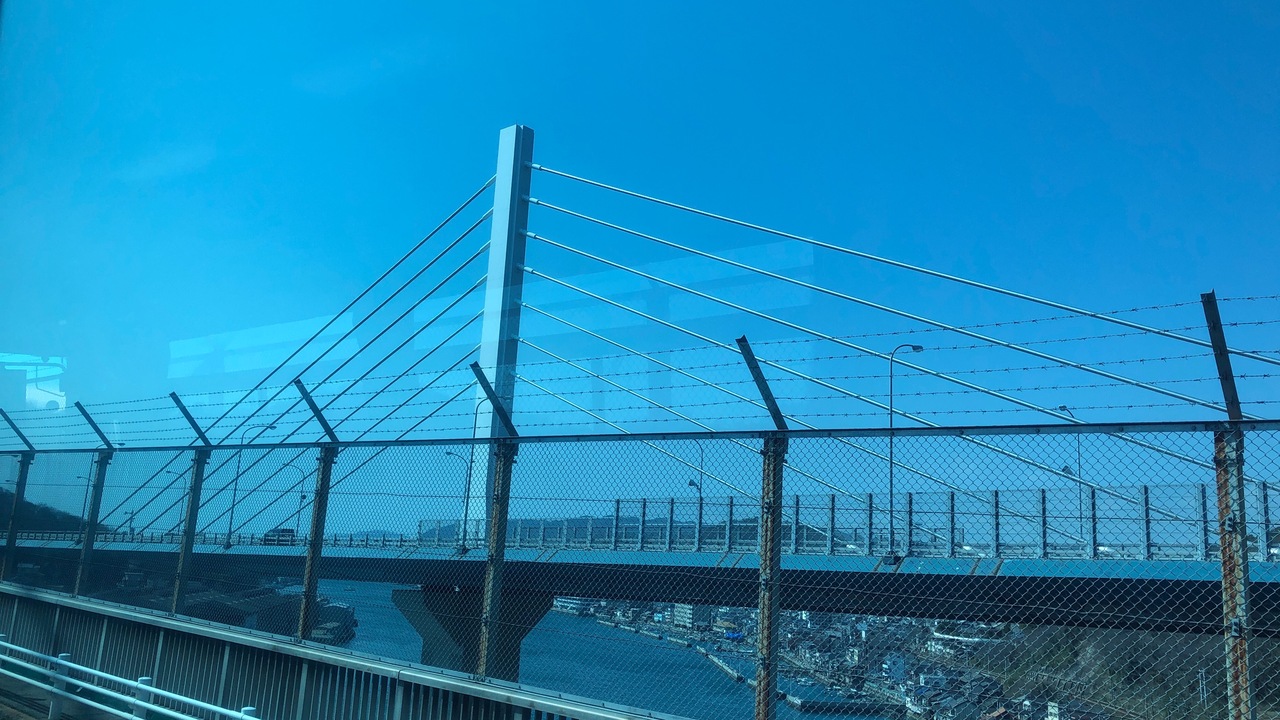 西瀬戸自動車道のことです。車で通るだけでなく、サイクリングできることでも有名です。広島県尾道市~愛媛県今治市、約60kmの区間に、約10の橋が架かっています。それぞれの橋は、見た目が全く違い、個性的です。