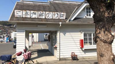 尾道・向島にあるバス停です。白い木造の、古い待合所があります。尾道を舞台にした映画「あした」に出てきた船の待合所が、このバス停にバス待合所として移築されました。近くには、土堂へ行く尾道渡船の乗り場もあります。
