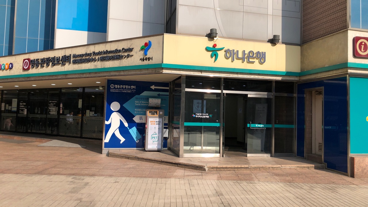 ハナ銀行の建物1階が、観光案内所になっています。ソウルだけでなく、韓国各地の観光パンフレットがもらえます。有料かと思うような観光ガイドブックが、無料でいただけました。有人カウンターもあり、外国語対応が可能です。小規模ですが、土産コーナーもあります。