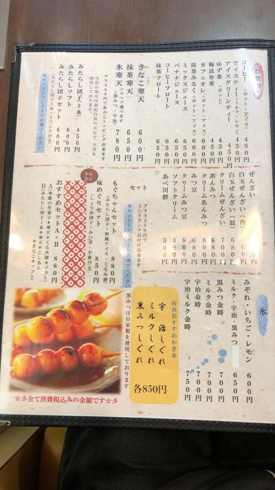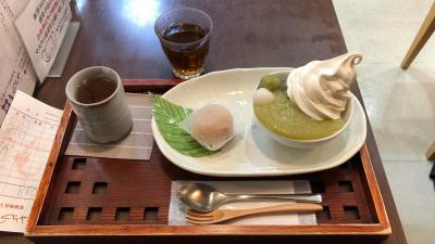 難波駅の地下街「NAMBAなんなん」にある甘味処です。くるみ餅や黒胡麻しるこなど珍しいメニューもあります。今回は、おすすめセットA・880円を食べました。ソフトクリームくるみ餅と季節の生菓子(いちご大福)がセットになっています。