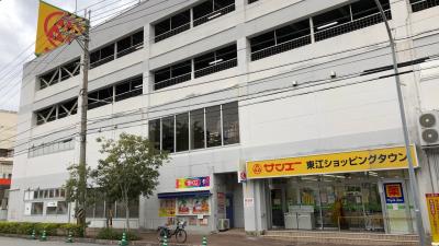 東江1丁目にあるショッピングセンターです。「ショッピングタウン」なので、他の「サンエーシティ」よりは小規模な店舗です。名護市街地にある点が便利です。名護には、郊外に大きなサンエー、イオンがありますが、市街地から少し遠いです。1Fに唯一の飲食店「どん家」があり、ゆったりとした席でくつろげます。