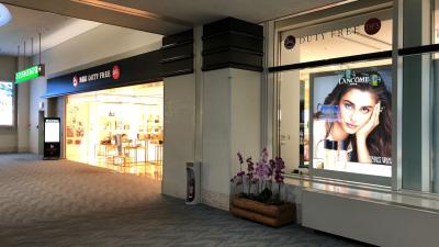 那覇空港国内線ターミナル、保安検査後のエリアにあります。おもろまちの店舗で買った免税品は、空港内のこちらの店舗で受け取ります。おもろまちの店より数は少ないですが、ブランド品の販売も行われています。海外旅行の時とは違って、タバコは免税とはならないようです。