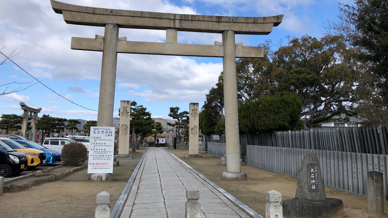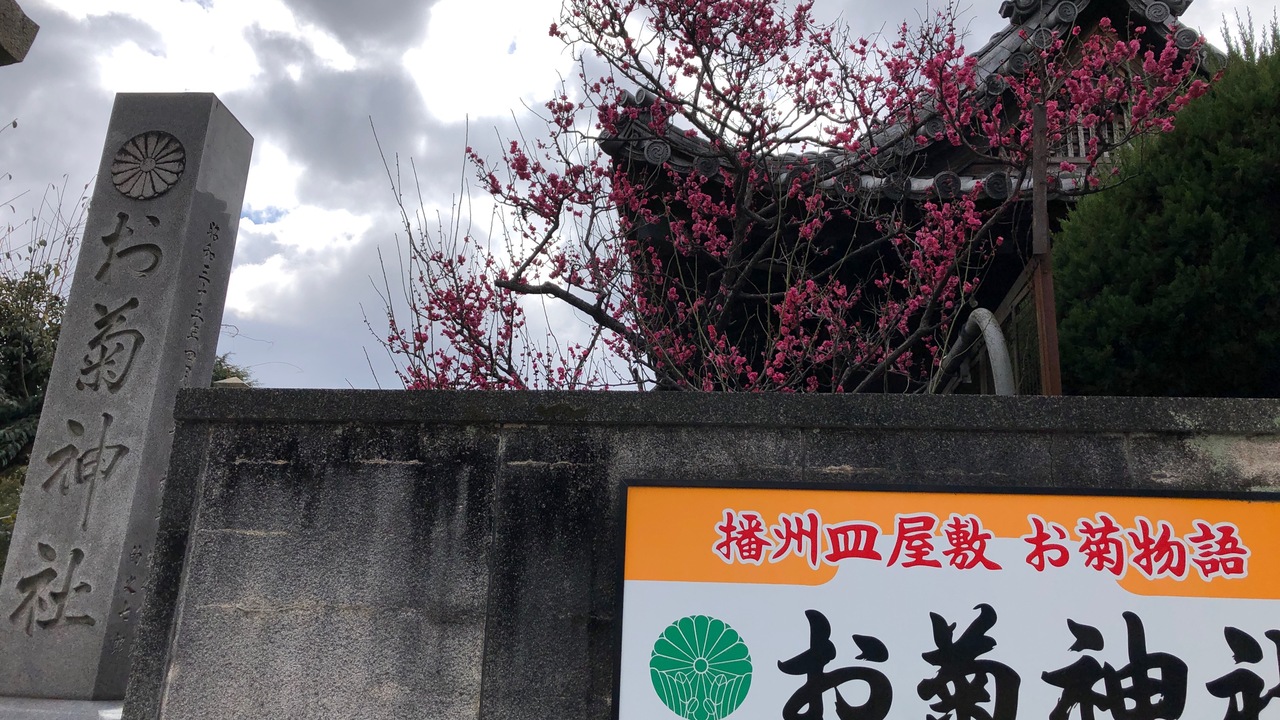 姫路駅の北側にあります。街中にあるので、境内は狭いです。昔、疫病が流行していたとき、一晩で12本の薬草が境内に生えたことから、十二所神社と呼ばれるようになったそうです。境内には、お菊神社もあります。初春に訪れると、梅がきれいでした。