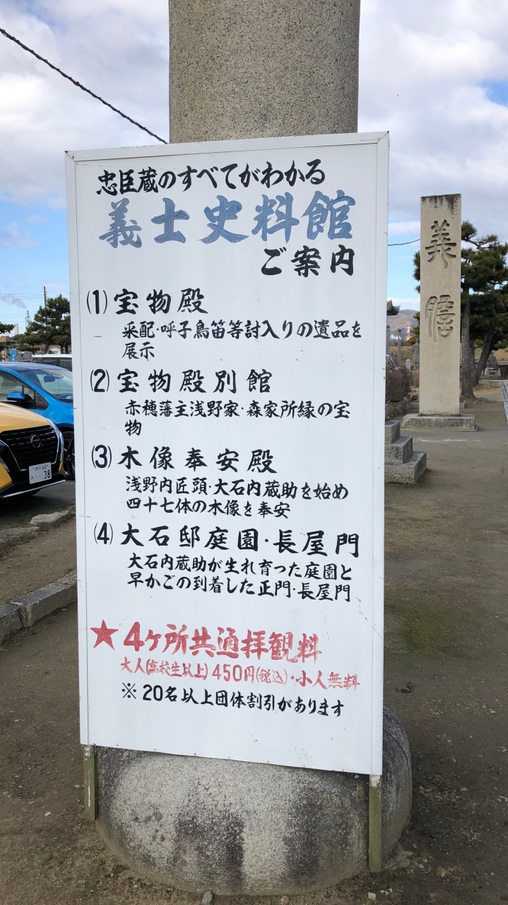 赤穂の大石神社境内にあります。大石神社は、大石内蔵助ら赤穂義士を神とする神社です。このことから、義士資料館でも、大石家の宝物、大石内蔵助の遺品などが展示されています。大石家の長屋門・庭園も見学可能です。