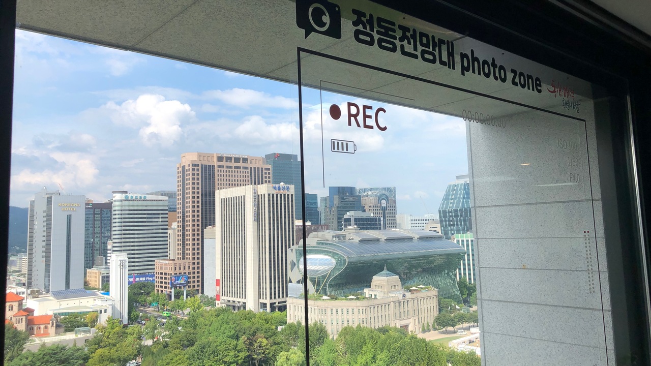 徳寿宮の外壁に沿った道です。徳寿宮の壁が、石積みでできており、レトロな雰囲気となっています。ソウル市・西小門庁舎という、高い建物があります。こちらの13階が、貞洞展望台として無料開放されており、おすすめです。