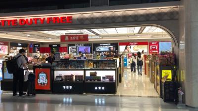 金浦空港の国際線ターミナル、保安検査後のエリアにあります。市中の免税店より、規模は小さいです。店頭に、セールや割引に関するパンフレットが置いてあります。パンフレットを読んでから買い物した方がお得です。
