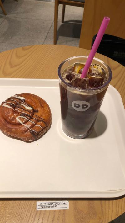 韓国でチェーン展開しているドーナツ屋さんです。昔は、日本にもあったそうですが、撤退してしまいました。金浦空港だけでなく、街中でも見かけます。写真のドーナツは、コーヒーロールという、日本では見かけないドーナツです。
