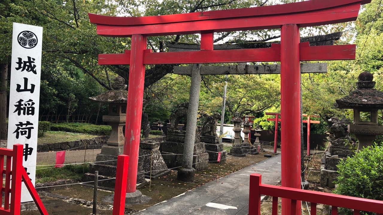 松江城の真下にあるので、誰もが通る神社です。境内は広くなく、石鳥居や石の柵は、古びた雰囲気です。松江藩初代藩主・松平直政公などを祀ります。ハート型の絵馬が奉納されているのは、松江ならではだなと思いました。