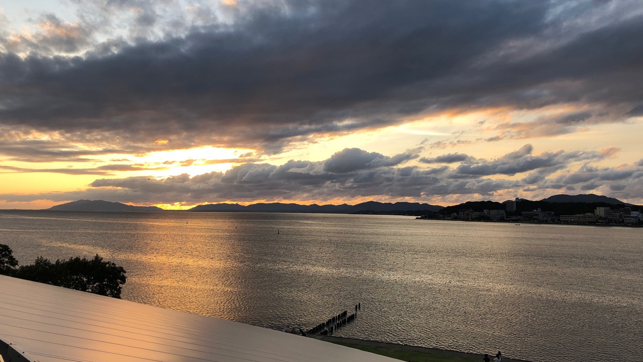宍道湖畔にある島根県立美術館は、宍道湖に沈む夕日が見られるスポットとしても有名です。美術館1Fのロビーは、入場自由となっており、宍道湖畔に出ることも可能です。美術館以外にも、宍道湖大橋の上など、夕日スポットはいくつかあります。