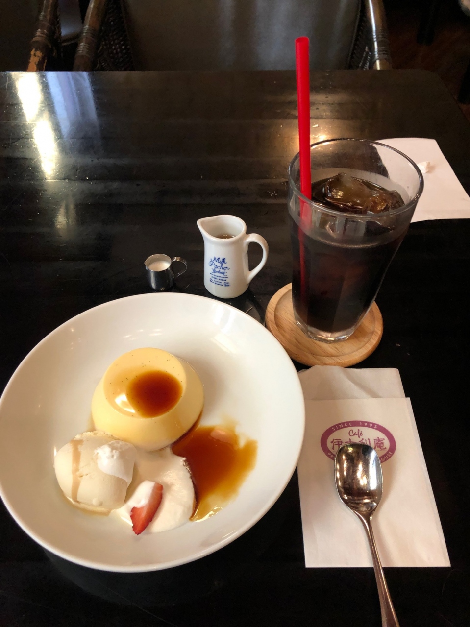 堺市に何店舗からある喫茶店です。堺東店は、アーケード商店街の中にあります。2F建てでレトロな雰囲気です。テレビでも紹介されたという「王様生プリン」を食べました。クリームのような滑らかさです。名前プリン単品は480円ですが、飲み物とセットで少し安くなりました。モーニングメニューもおすすめです。