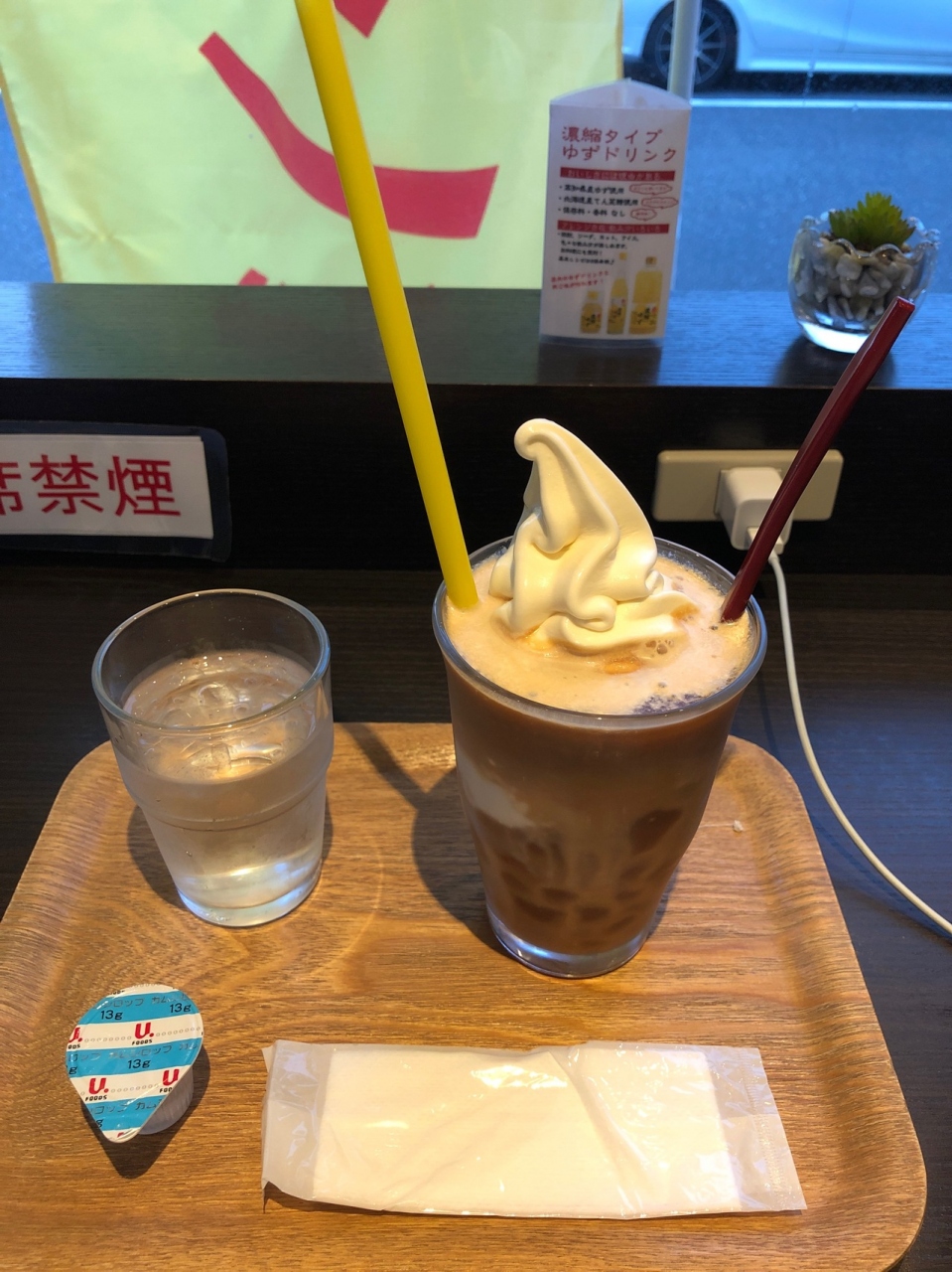 高知駅北口のカフェです。高知アイスという店名の通り、土佐ジロー卵を使ったソフトクリームがおいしいです。コーヒーフロートで600円ぐらいでした。カウンター席にはコンセントもあり、夜20時まで開いているので、便利なカフェです。