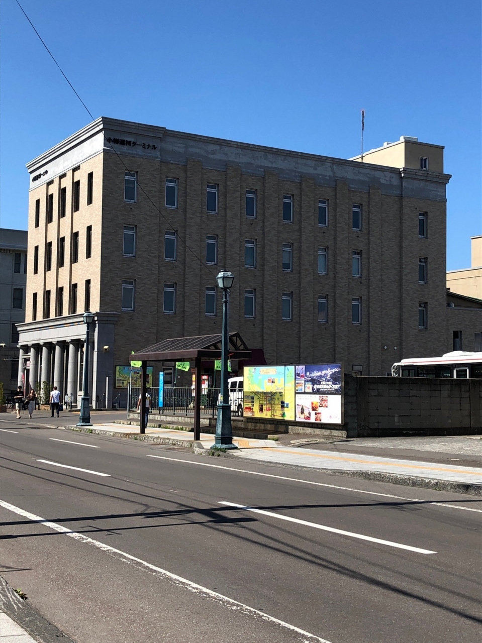 北海道中央バスのターミナルです。小樽駅前バスターミナルから800mぐらい離れた海側にあります。もと三菱銀行小樽支店の建物で、欧風でレトロな雰囲気です。バスターミナル機能のほか、ぱんじゅうで有名な桑田屋のカフェなどもテナントとして入っており、休憩にも便利です。