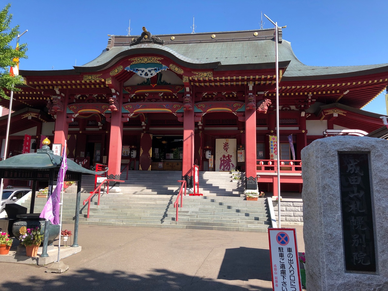 すすきのの南側、街中にあるお寺です。成田山の名前のとおり、千葉県にある成田山新勝寺の別院です。こちら札幌の成田山は、新栄寺という名前です。通常は、街中にありながらひっそりしていますが、大晦日や正月には、たくさんの人が訪れます。