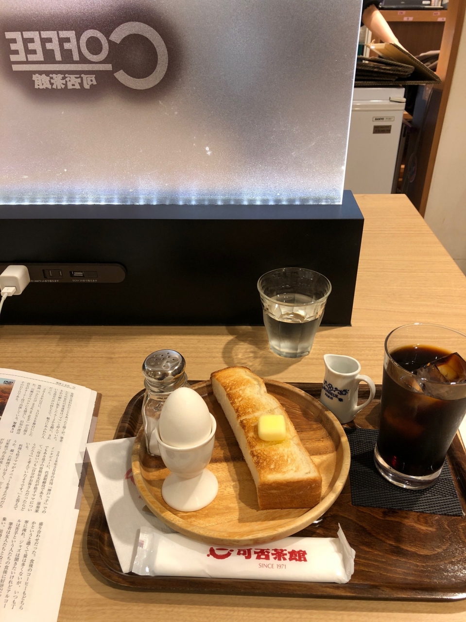 可否茶館を「かひさかん」と読む、小樽の喫茶店です。小樽や札幌各地にチェーン展開しています。11時までは、ドリンクを頼むと、トースト・ゆで卵が付くモーニングサービスがあります。こちら、ポールタウン店は、朝8時から営業しているので便利です。狭い店内ですが、4席ほどコンセント席もあります。