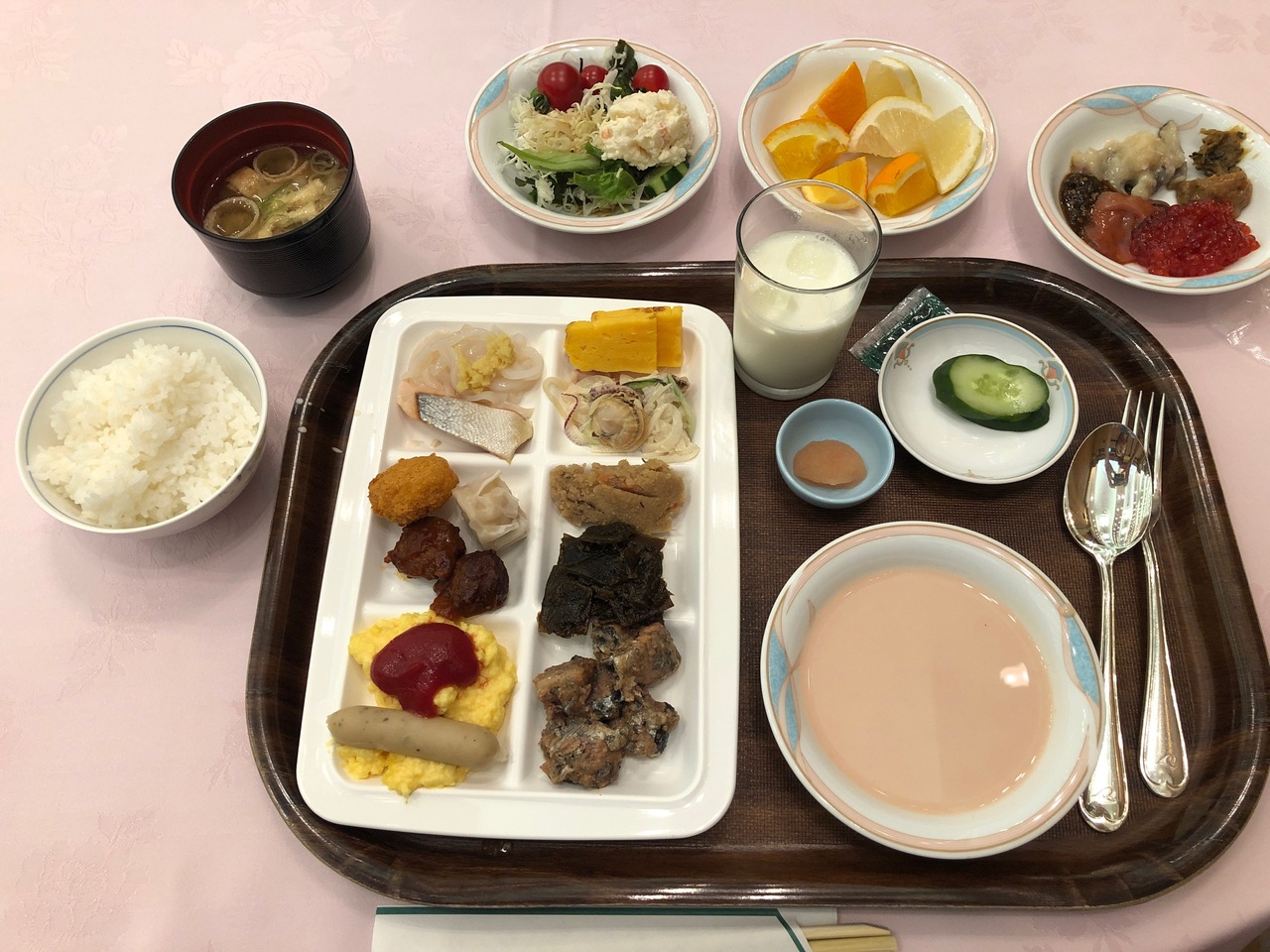ライフォートホテル1Fのレストランです。7:00~9:30の朝食バイキング1400円を利用しました。やや高めですが、北海道らしいものもあり、満足しました。いか、羅臼昆布の佃煮、帆立のマヨネーズ和え、筋子などです。一番美味しかったのは、ビーツ豆の冷製ポタージュスープです。豆っぽさはあまり無いのですが、ほんのり甘いのがおそらく豆由来だと思われます。一年前の夏に来店したときも、ビーツのポタージュのおいしさに感激したことを思い出しました。
