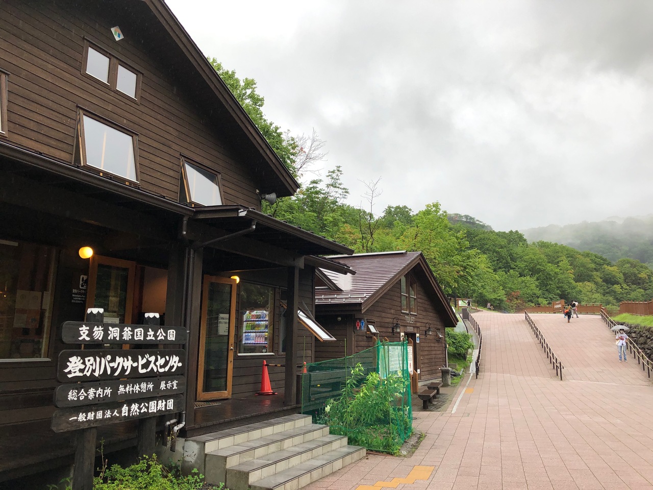 登別温泉には、北と南に、2つの観光案内所があります。南にあるのは、道南バスターミナル内の案内所です。そして、北にあるのが、こちらの登別パークサービスセンターです。地獄谷への遊歩道(散策路)の入口にあります。