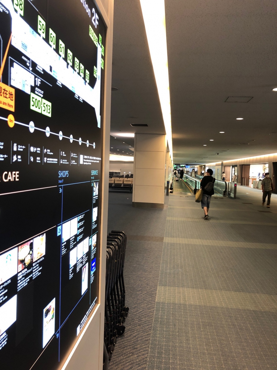 第1ターミナルはJAL、第2ターミナルはANAが発着します。保安検査後も、魅力的なショップ・レストランがたくさんあります。ただ、端から端までは800m近くあるので、搭乗口から離れすぎると乗り遅れてしまうので要注意です。動く歩道があるので、つい、遠くまで行ってしまいます。