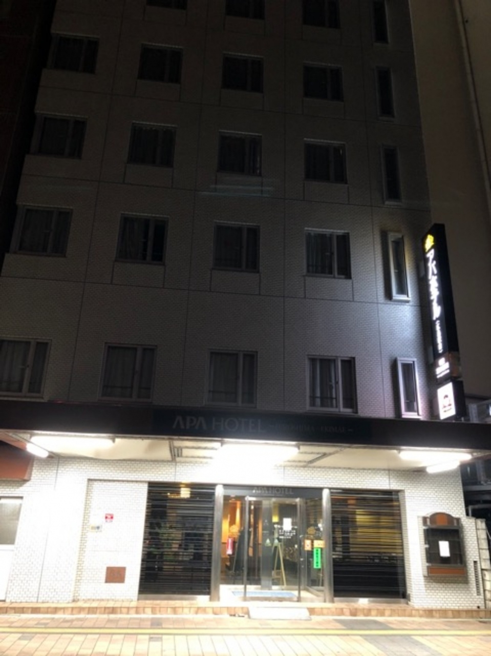 広島駅南口の、小さなアパホテルです。福屋百貨店広島駅前店が近くにあります。猿猴川を渡ったところに、もう一つのアパホテル・広島駅前大橋があり、巨大で夜のライトアップが目立つため、間違えないよう要注意です。同じアパホテルなのに、違いに驚きました。