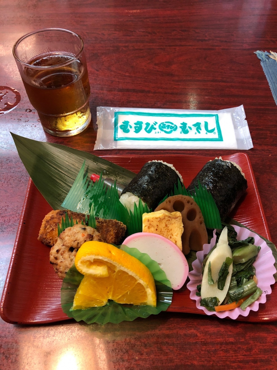 おむすびが有名な、広島の弁当屋・和食店です。こちらの本通店は持ち帰り専用店です。胡町通店は店内飲食も可能です。写真のおむすび弁当が870円とやや高めですが、ほんのり味がついたご飯のおむすびが病みつきになるおいしさです。胡町店の店内飲食では、うどんなどのメニューもあります。