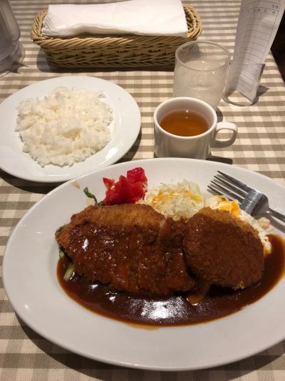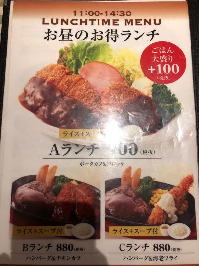 大阪や東京にある洋食チェーン店です。こちら南森町店は、天神橋筋商店街の中にあります。南森町駅の南側です。うなぎの寝床のように奥に長い店内です。11:00~14:30のランチ限定3種のメニューは、土曜日でも注文可能でした。