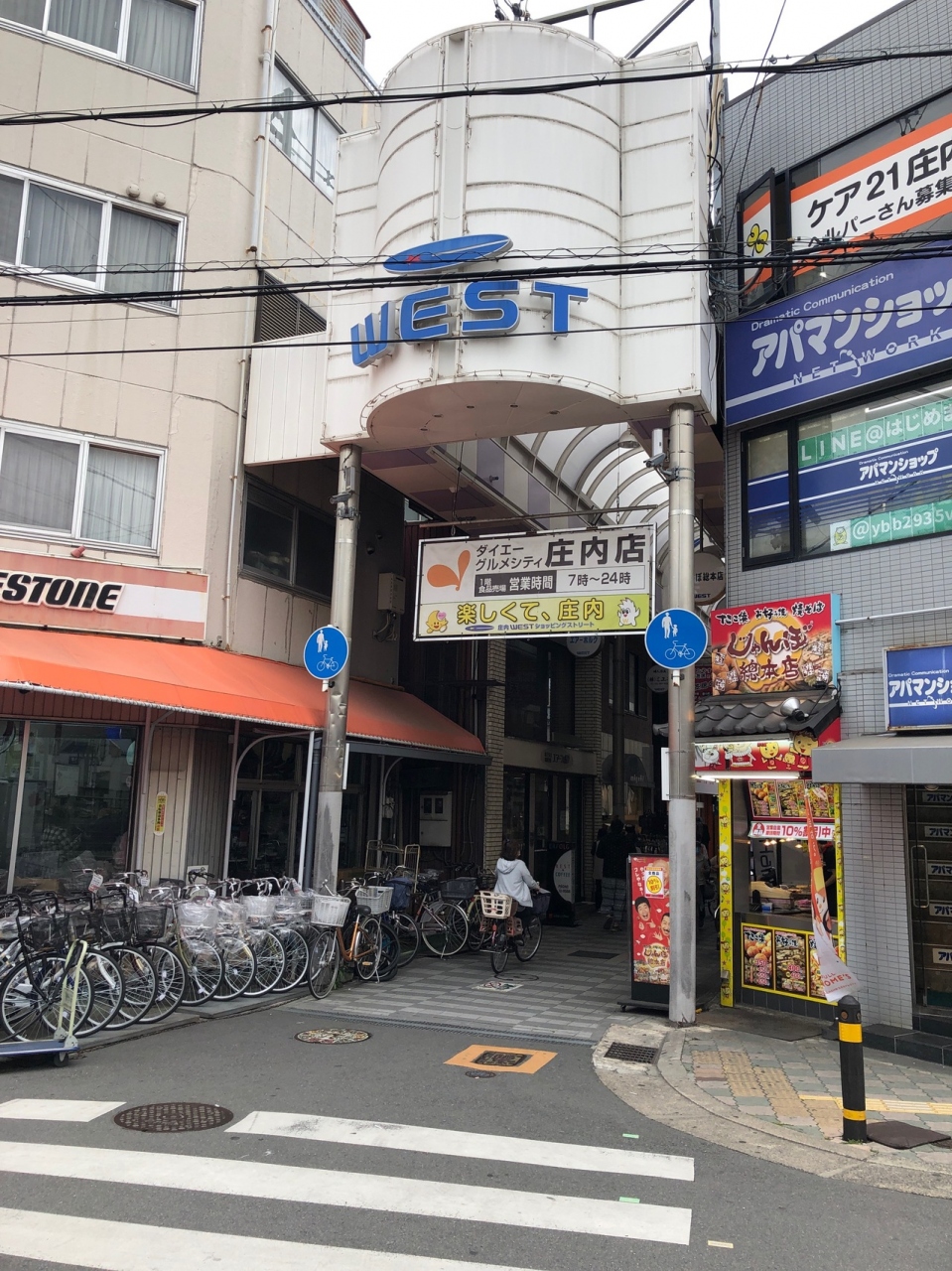 庄内地区最大のアーケード商店街です。長さは300mほどですが、人通りが多く、閉店している店はほとんどありません。飲食店が多いように思います。途中、2F建てのグルメシティ庄内店があります。庄内WESTの一筋南側にも、少しディープなアーケード商店街があります。