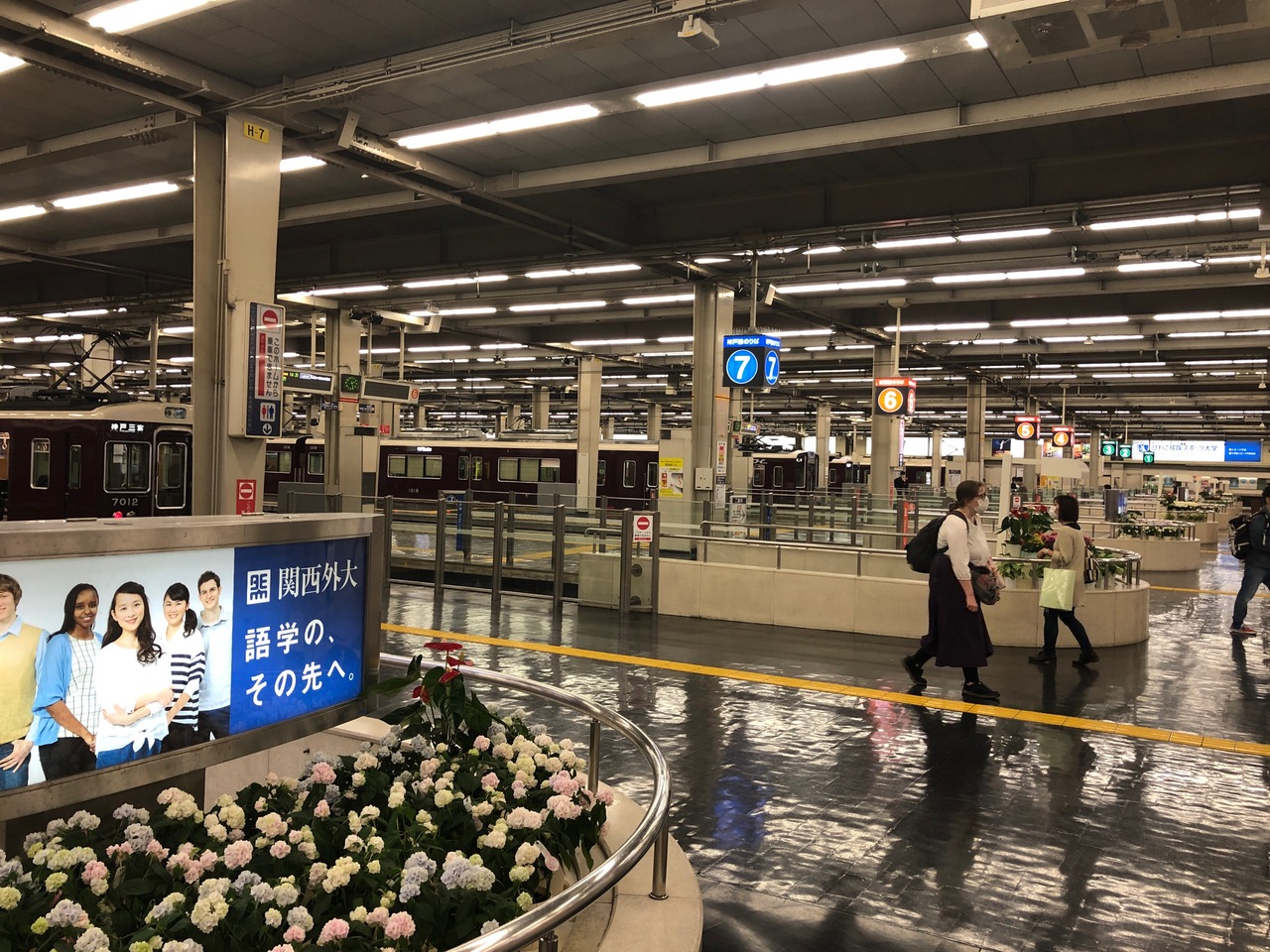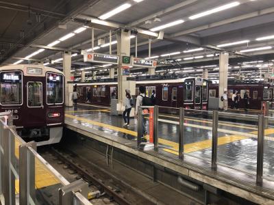 ずらりと9本の線路が並ぶ大阪梅田駅は、日本の私鉄最大の駅だと思います。ここから、神戸・宝塚・京都河原町方面へ出発しています。ホームの左右には、飲食店があり、窓越しにホームを見下ろしながら、コーヒーやお酒を楽しめます。