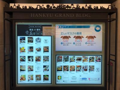 阪急32番街ビル・27~31Fのレストラン街です。「空庭」の名前の通り、高層階にあるので、どの店も窓側から梅田の街並みが見下ろせます。イタリアン・パパミラノ、肉がおいしいピグボッテ、喫茶・英國屋など、多彩な飲食店が集まっています。夜景も美しいです。