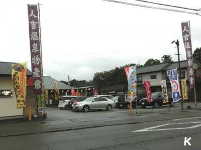 JRとくま川鉄道の乗り換え駅で、人吉観光の窓口です。特に、JRの本数が少ないので、乗り遅れに注意です。駅前には、毎時0時に動く、城の形をしたからくり時計があります。また、くま川鉄道・人吉温泉駅では、クリアファイルや記念乗車券など、くま鉄グッズを買えます。栗おこわで有名な駅弁屋・やまぐちも、人吉駅前にあります。