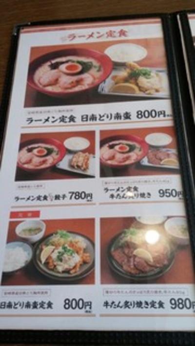イオンモール都城駅前のラーメン屋です。とんこつラーメンとチキン南蛮or餃子などがセットになったメニューがお得のようです。ラーメン・日南どり南蛮セット800円を食べました。とんこつラーメンは、味は濃厚なのにしつこくなくて、おいしかったです。南蛮は、揚げたてではなく、スーパーのお惣菜レベルでがっかりしました。
