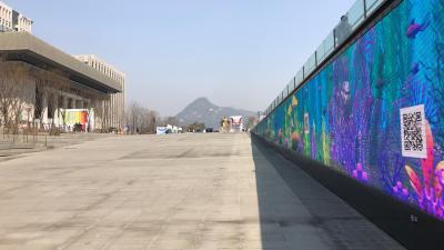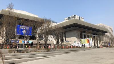 光化門広場のことです。「ヨルリンマダン」とは、韓国語で、開かれた広場のことだと思われます。世宗大路沿いの、とても広い広場です。北端に景福宮の光化門、広場の両側に、世宗文化会館、大韓民国歴史博物館などが建ち並びます。