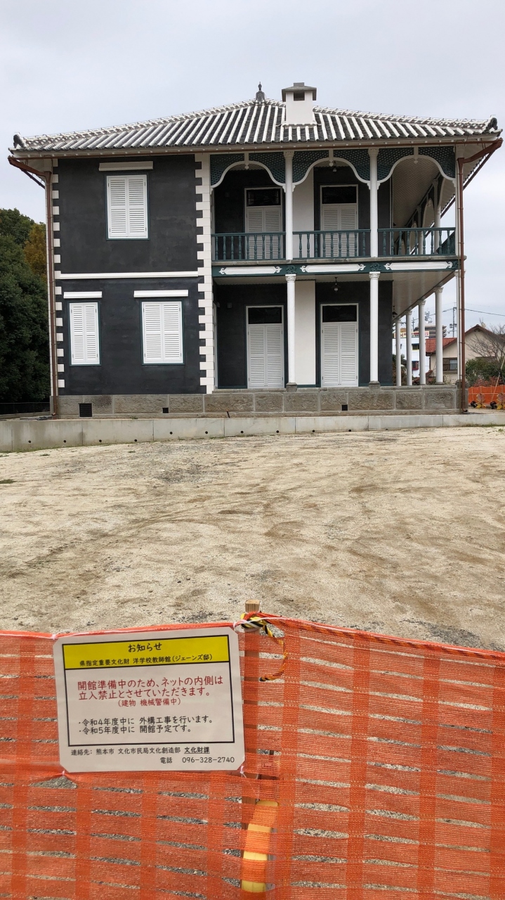 水前寺公園の近くにある洋館です。熊本洋学校の教師だったジェーンズが暮らしていました。熊本県内に残る、最古の洋館です。熊本県の重要文化財です。熊本地震で壊れたので、こちらに移築して、令和5年に再開館予定とのことです。