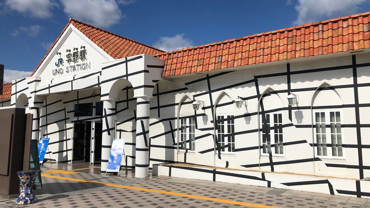 瀬戸大橋線・茶屋町駅と宇野駅を結びます。1時間に1本ぐらいしか走っていないローカル線です。宇野駅の周辺は、瀬戸内芸術祭の会場の一つとなっています。そのため、宇野駅のデザインも、アート作品のようなつくりです。