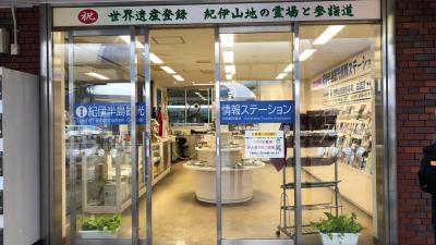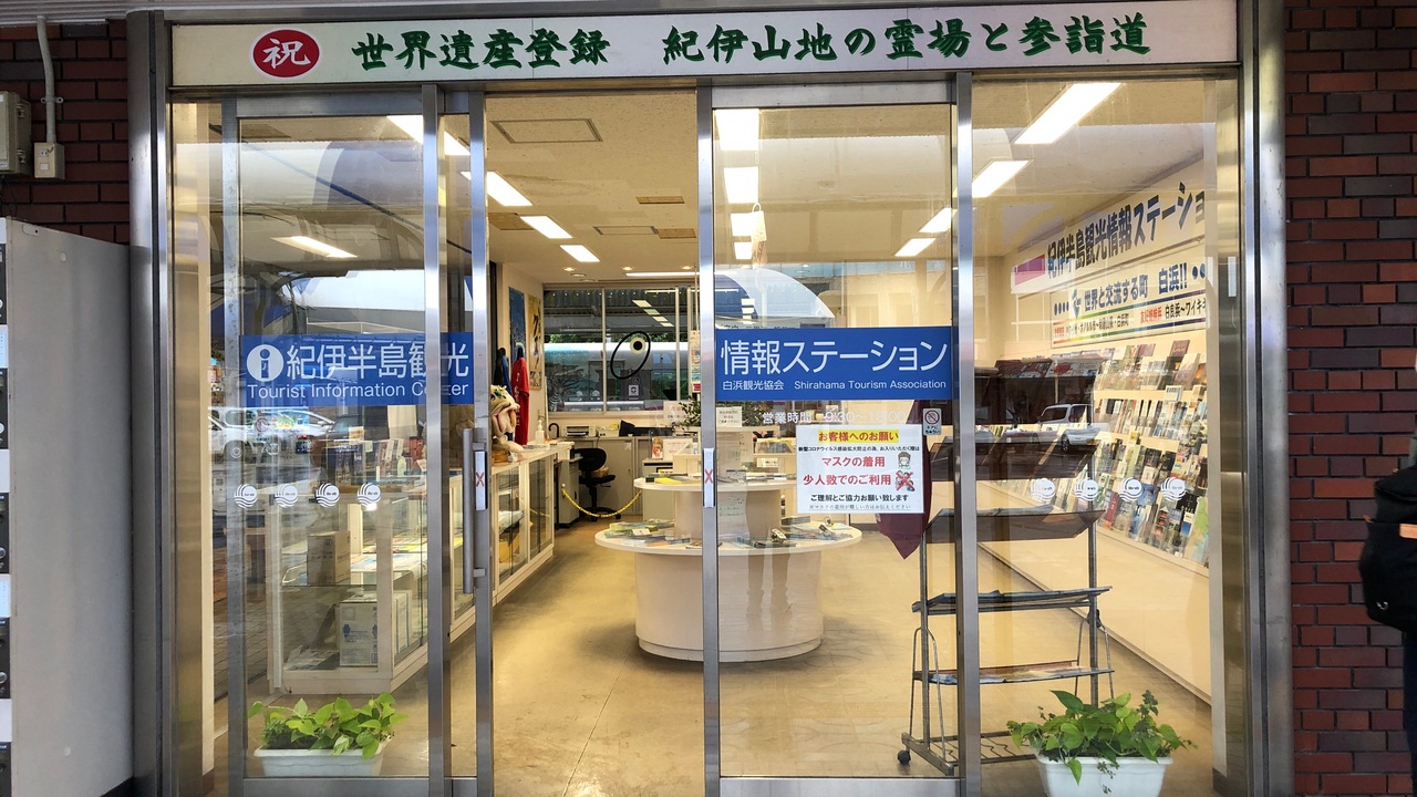白浜駅の改札を出て、左側の待合室の奥にあります。小さな観光案内所です。白浜町内の観光パンフレットのほか、紀伊半島一帯・熊野古道などのパンフレットがもらえます。営業時間は、9:30から18:00までです。