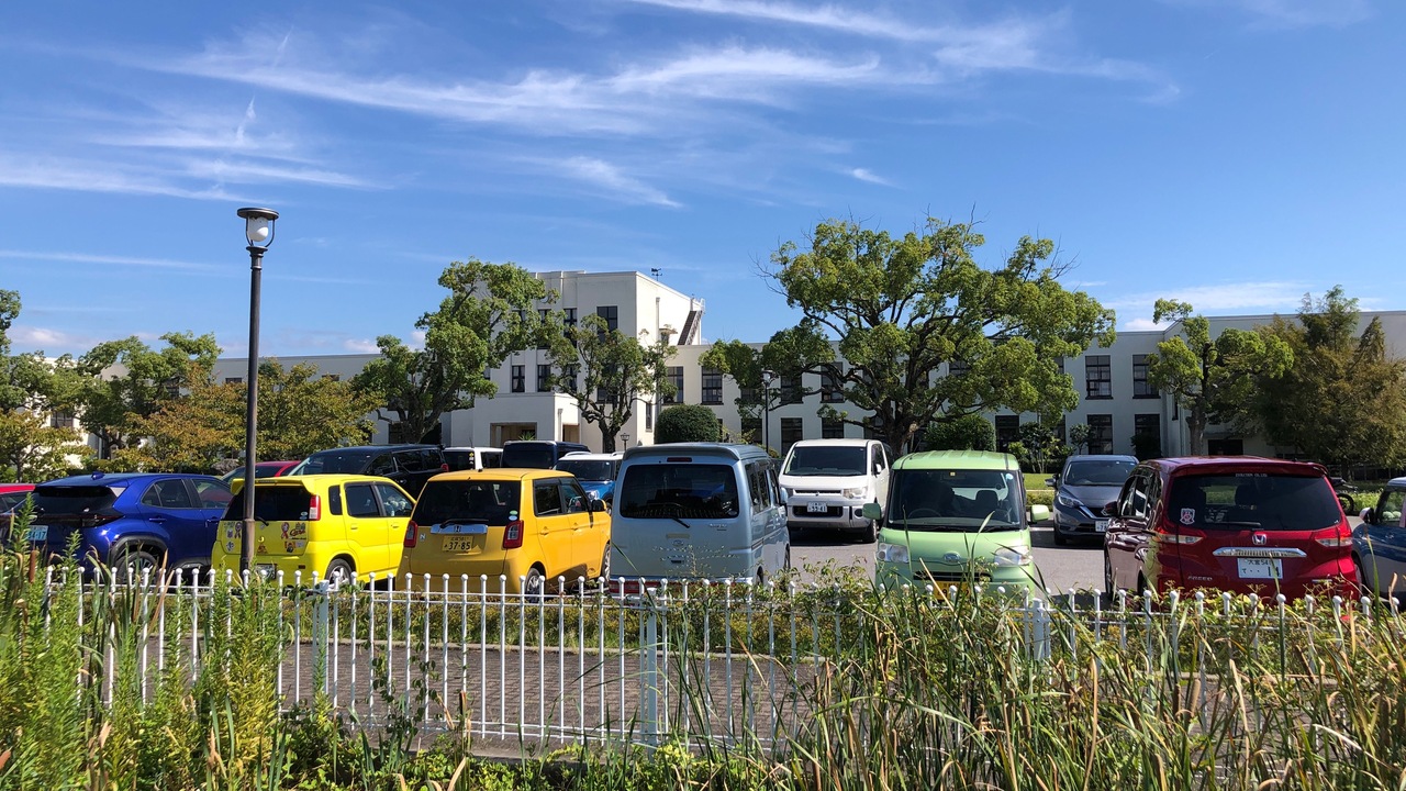 近江鉄道・豊郷駅から徒歩10分ぐらいです。白壁・2階建ての大きな校舎が見えてきます。近江商人だった丸紅の専務の寄贈で建てられた、豊郷小学校の旧校舎です。当時は、東洋一の小学校と呼ばれていました。駐車場が100台あるのもすごいです。